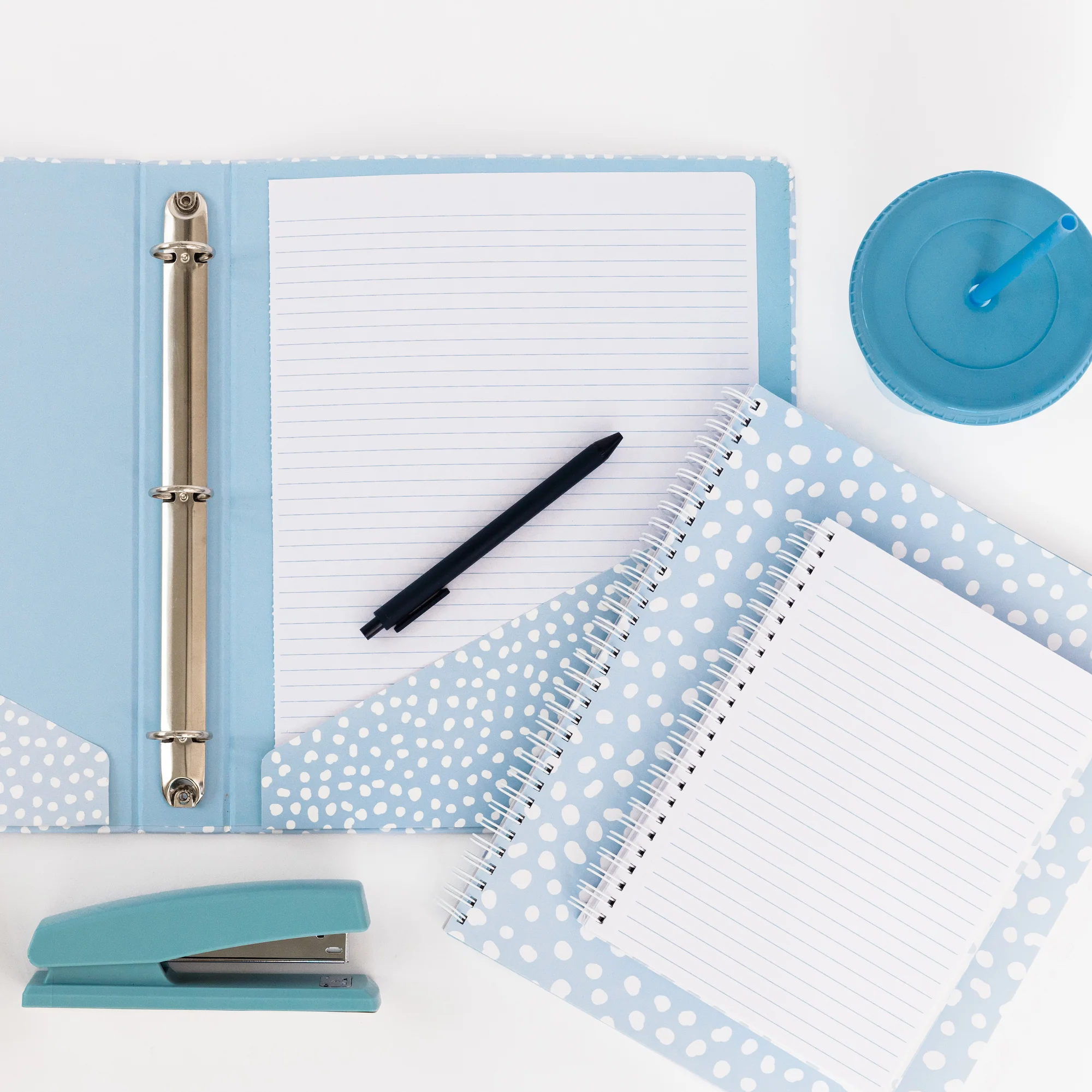 Three Ring Binder, Light Blue Dots